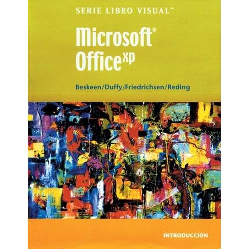 Reseña del editor El libro forma parte de la serie Libro Visual y esta dirigido a usuarios tanto actuales como potenciales, de Microsoft Office XP, de nivel basico o intermedio. El libro ofrece una introduccion practica a los aspectos de Microsoft Office 2002 y una guia se. Biografía del autor David W. Beskeen has authored or co-authored numerous computer books since 1992, including more than 25 titles for Course Technology. He has guided readers in mastering PowerPoint(R), Word, Excel, Internet Explorer, Outlook, Windows(R), Livemotion, and other leading proprietary software packages. An expert in applied technology, Mr. Beskeen has a variety of teaching and consulting experience in today's computer technology. Jennifer Duffy is a freelance author who lives and works in New Hampshire. She has been writing leading texts for Course Technology for more than ten years and has authored previous editions of MICROSOFT(R) WORD ILLUSTRATED for the popular Office series. Ms. Duffy has worked successfully in the business world as a writer, editor, and public relations liaison. She combines her strong business knowledge and expertise in Word with exceptional writing skills that ensure the clarity of this and each of her other books.Tapa blanda=634 páginas. Editor=Cengage Learning Editores S.A. de C.V. (14 de agosto de 2003). Colección=Serie Libro Visual. Idioma=Español. ISBN-10=9706863141. ISBN-13=978-9706863140. Valoración media de los clientes=Sé el primero en opinar sobre este producto.